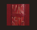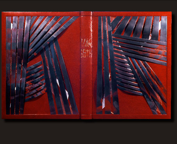 Teriade Editeur, Paris, 1958. Illustrations by Marcel Gromaire. 17 3/4”x12 1/2” page size. Bound in 2002 in red goatskin with laminated mylar strips, aluminum and painted gauze elements, gold and acrylic painted tooling.