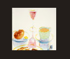 borrowing color usage from Wayne Theibaud, bonhomie from Brillat-Savarin and a smile from M.F.K Fisher.