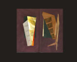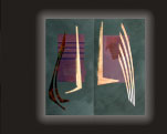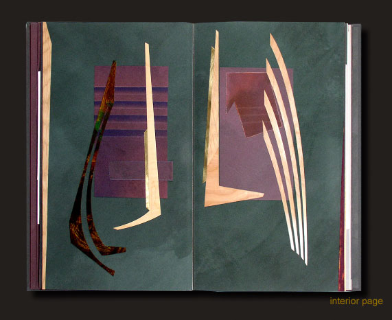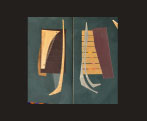 Angelique combines a two-part poem with studies of the materials used to make sail boats, and explorations of the spirit of sailing and the rhythm of the sea. The binding is quarter leather with painted cloth over sculpted boards. Most of the book’s painted, stiffened fabric pages have original collages of painted cloth, wood veneer, brass, cork, linen thread and acrylic paint - all materials used in boat building. Issue size: 60 variants.